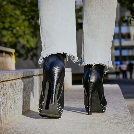 Botín Valeria Color Negro Liso/Pitón Blanconegro
